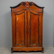Mahonie linnenkast, Hollands, Willem III -deuren scheluw, defecten-, 225 x 140 x 50 cm