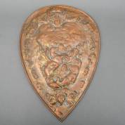 Koperen wandschild met reliëfdecor: strijdende cavalerie, 65 x 45 cm