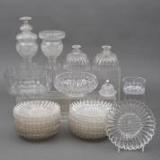 Kristallen serviesgedeelte, waaronder: botervlootje met 2e gehalte zilveren knop, borden, schalen en gembercoupe -gebruikssporen-