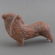 Keramiek beeld: twee dieren zij-aan-zij met menselijke hoofden, niet gesigneerd, 16 x 27 x 9 cm