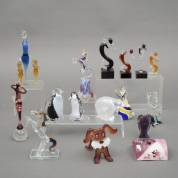 Grote collectie glazen mens- en dierfiguren -kleine gebruikssporen-, 18 x Ø 7 cm
