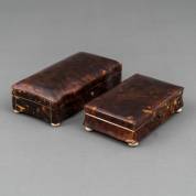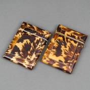 Twee gelijkende schildpadbelijmde visitekaartdoosjes, 19e eeuw -een met restauratie bij scharnier-, 9,5 x 7 cm
