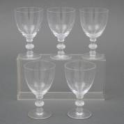 Vijf wijnglazen met gemodelleerde en deels gesatineerde stam, uitvoering Lalique, Frankrijk, gemerkt op onderzijde, 13,5 x Ø 8 cm