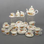 Porseleinen serviesgedeelte, decor 'Summer Day', uitvoering Villeroy & Boch, Mettlach, eind 20e eeuw, bestaande uit: één theepot, één suikerpot, één roomkannetje, negen grote kop-en-schotels en negen kleine kop-en-schotels