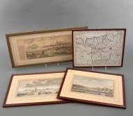 Vier ingekleurde gravures: 'Maestricht', 'De stad Sluis', ''t Sas van Gend, 'Carte des environs de Axel Hulst et le Sals de Gand' -één met gebroken glas-, 29 x 63 cm