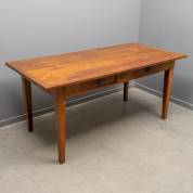 Rechthoekige vruchtenhouten tafel met twee lades, 20e eeuw -gebruikssporen-, 78 x 172 x 85 cm