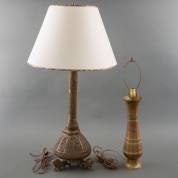 Twee staande lampen met messing voet, 20e eeuw -één zonder kap-