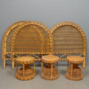 Drie rotan bedhoofdeindes met drie bijpassende bedtafeltjes, jaren '70 -gebruikssporen-, 125 x 105 x 4 cm