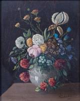 Franse School: bloemstilleven, olieverf op board, r.o. gesigneerd Rideau, 28 x 22 cm