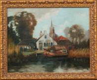 Hollandse School: zicht op Kortenhoef, olieverf op board, r.o. gemonogrammeerd L.H., 20e eeuw