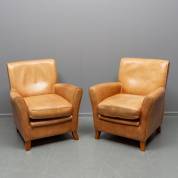 Paar cognackleurige lederen armfauteuils, uitvoering Baxter, Italië, eind 20e eeuw -lichte gebruikssporen-, 85 x 76 x 80 cm
