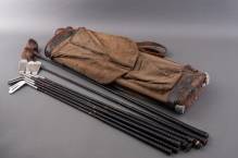 Golftas met serie van acht clubs, Engeland, jaren '50 -gebruikssporen-, 84 x 25 x 10 cm