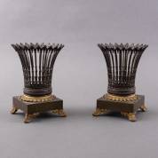 Paar deels gepatineerd, deels verguld bronzen mandvormige tafelstukken, Frankrijk, circa 1820 -één mand is een beetje uit vorm-, 18,5 x 10 x 10 cm
