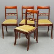 Vier mahonie stoelen met olijfgroene velours bekleding, 20e eeuw, 90 x 46 x 45 cm