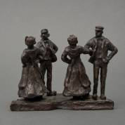 Bronzen beeldje: twee dansende boerenechtparen, op de achterzijde gemonogrammeerd HH, 20e eeuw, 14,5 x 18 x 8 cm