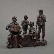 Bronzen beeldje: de straatmuzikant brengt plezier, oplage 91/150, gemonogrammeerd HH, 20e eeuw, 13,5 x 18 x 6 cm