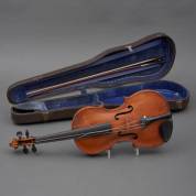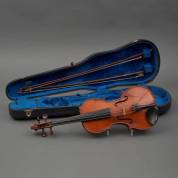 Duitse viool, begin 20e eeuw, geen snaren, kam en staartstuk, met strijkstok, in koffer, 58 x 21 x 4 cm