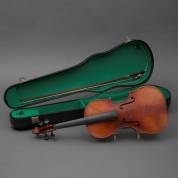 Belgische of Franse viool, draagt label 'Thomas Balestrieri', circa 1850 -defecten-, met strijkstok, in koffer, 58 x 18 x 4 cm