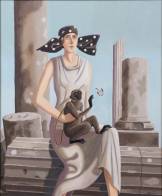 Isabelle Rozot (1962), vrouw met aapje, olieverf op doek, r.o. gemonogrammeerd en genummerd 913, 63 x 51 cm
