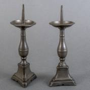 Paar tinnen penkandelaartjes, 18e/19e eeuw, 20 x 6 x 6 cm