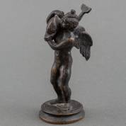 Bronzen beeldje: gevleugelde jongen met dolfijn op de schouder, 13 x 7 x 5,5 cm