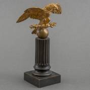 Verguld bronzen beeldje: adelaar met lauriertak in zijn bek, op zuilvormig basement, 18 x 12 x 9 cm