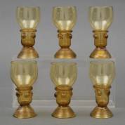 Serie van zes okergele glazen roemers met braamnoppen, 19e/20e eeuw, 12,5 x Ø 5,5 cm