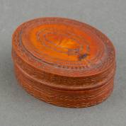 Ovaal gesneden buxushouten snuifdoosje, 19e eeuw, 3 x 7 x 5,5 cm