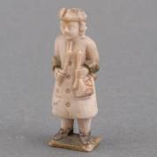 Albasten miniatuurbeeldje: tamboer, 18e eeuw -chip langs het basement, resten van zwarte verf-, 8 x 3 x 2 cm