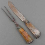 Aansnijcouvert, de agaat heften met zilveren monturen met leeuwenkopdecor -één heft defect-, 19 x 3,5 x 2,5 cm