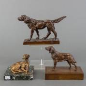 Drie bronzen beeldjes: honden -natuurstenen basement gechipt-, 11 x 20 x 6 cm