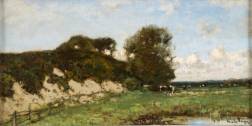 Cornelis Kuijpers (1864-1932), koeien in duinlandschap, marouflé, r.o gesigneerd -craquelé-, 22 x 44,5 cm