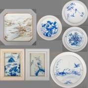 Zeven diverse Chinees porseleinen plaquettes, waaronder vier ronde