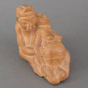 Balinees houten beeld: barende vrouw gesteund door haar man, jaren '60, 16 x 18 x 10 cm