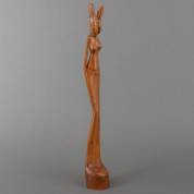 Balinees houten beeld: staande vrouw, jaren '30 -kleine defecten aan de voet-, 64 x Ø 9 cm