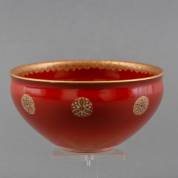 Satsuma kommetje, de binnenzijde met decor: pauw, de oranjerode buitenzijde met cirkelvormige decoratie, Japan, Meiji, gemerkt, herkomst: Collectie Hamadi, Hattem, 6 x 12 Ø cm