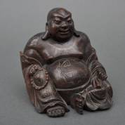 Gesneden houten beeld ingelegd met fijn metaaldraad: lachende Boeddha, China, 20e eeuw -defecten-