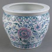 Grote porseleinen cache-pot met Chinees decor, hedendaags -lichte gebruikssporen-, 30 x Ø 37 cm