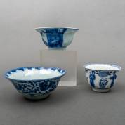 Chinees porseleinen kom met blauw-wit karakterdecor, eind 17e eeuw, herkomst: Christie's, Vung Tau Cargo, lot 970, 6 x Ø 12,5 cm