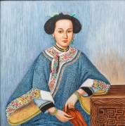 Grote Chinese beschilderde porseleinen plaque met portret van een rijk geklede vrouw, mogelijk Xiang Fei, concubine van keizer Qianlong, 20e eeuw, 59 x 59 cm