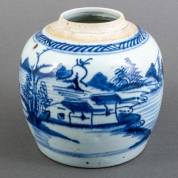 Chinees porseleinen gemberpot met blauw-wit landschapsdecor, 17 x Ø17 cm