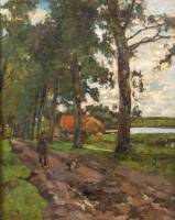 Willem de Zwart (1862-1931), boer met hond op landweg, olieverf op doek, l.o. gesigneerd -gedoubleerd-, 49 x 39 cm