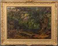 School van Barbizon: houthakker in bos, olieverf op doek, niet gesigneerd, 19e eeuw -gedoubleerd, maar laat los van drager-, 53,5 x 72 cm