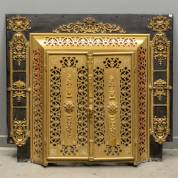 IJzeren voorplaat van haardombouw, gedecoreerd met messing, 85 x 92 x 10 cm