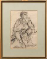 Johan Dijkstra (1896-1978), rustende arbeider, zwart krijt op papier, niet gesigneerd, 35 x 24 cm