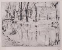 Jan Altink (1885-1971), bomenrij met boerderij, ets, r.o. voorzien van atelierstempel, 22 x 27 cm