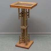 Piëdestal met eiken blad, ingelegd met koper en messing, het geheel op messing buisframe -gebruikssporen-, 85 x 42 x 33 cm