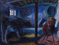 Hans van Norden (1915-2011), koe op stal, olieverf op board, r.o. gesigneerd en gedateerd '49, 39 x 51 cm