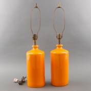 Paar oranjegeglazuurde aardewerk lampvoeten, jaren '70, 77 x Ø 17 cm