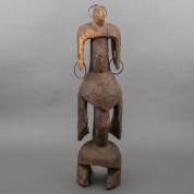 Afrikaans houten vruchtbaarheidsbeeld met metalen ringen door het hoofddeksel, Mumuye, Nigeria -sporen van oude houtworm-, 65 x 16 x 16 cm